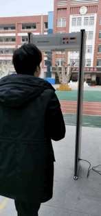 leyu.樂魚人體測溫安檢門應用于學校防控,高精度微型24小時動態紅外體溫監測儀,全方位對通行人員進行體溫掃描篩查。