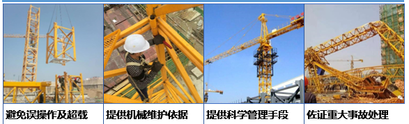 通過安裝安全檢測儀于升降機、塔機內,實時協助識別載重、駕駛員身份、實時高度及運行速度、駕駛室門鎖狀態、傾斜度,并實現實時內部抓拍,及時通過GPRS實時數據上傳至遠程監控中心,實現遠程監管、超限自動報警、塔群碰撞監控等多種功能。