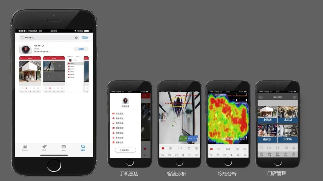 VFM 視頻監控中心是leyu.樂魚安防免費視頻監控平臺APG-AS300 和 定制視頻監控平臺VFS-B3000 中的移動端軟件增強模塊,該系統可與leyu.樂魚安防品牌攝像機實現快速視頻接入,實現手機移動端訪問門店進行視頻查看、全國分店集中管理,還可快速與leyu.樂魚安防AI功能型攝像機實現快速對接,實現隨地隨地查看門店進出客流量等視頻疊加數據,實時分析監測數據,可用于實時動態跟蹤進出門店的顧客消費行為與偏愛,輔助了解實體門店內的消費行為, 輔助店鋪精準營銷及管理運營策略優化。