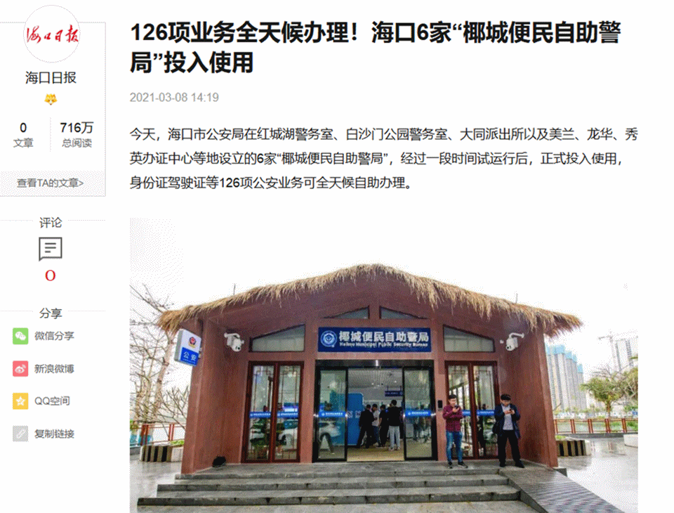 就在近期,海口的椰城無人警局火了